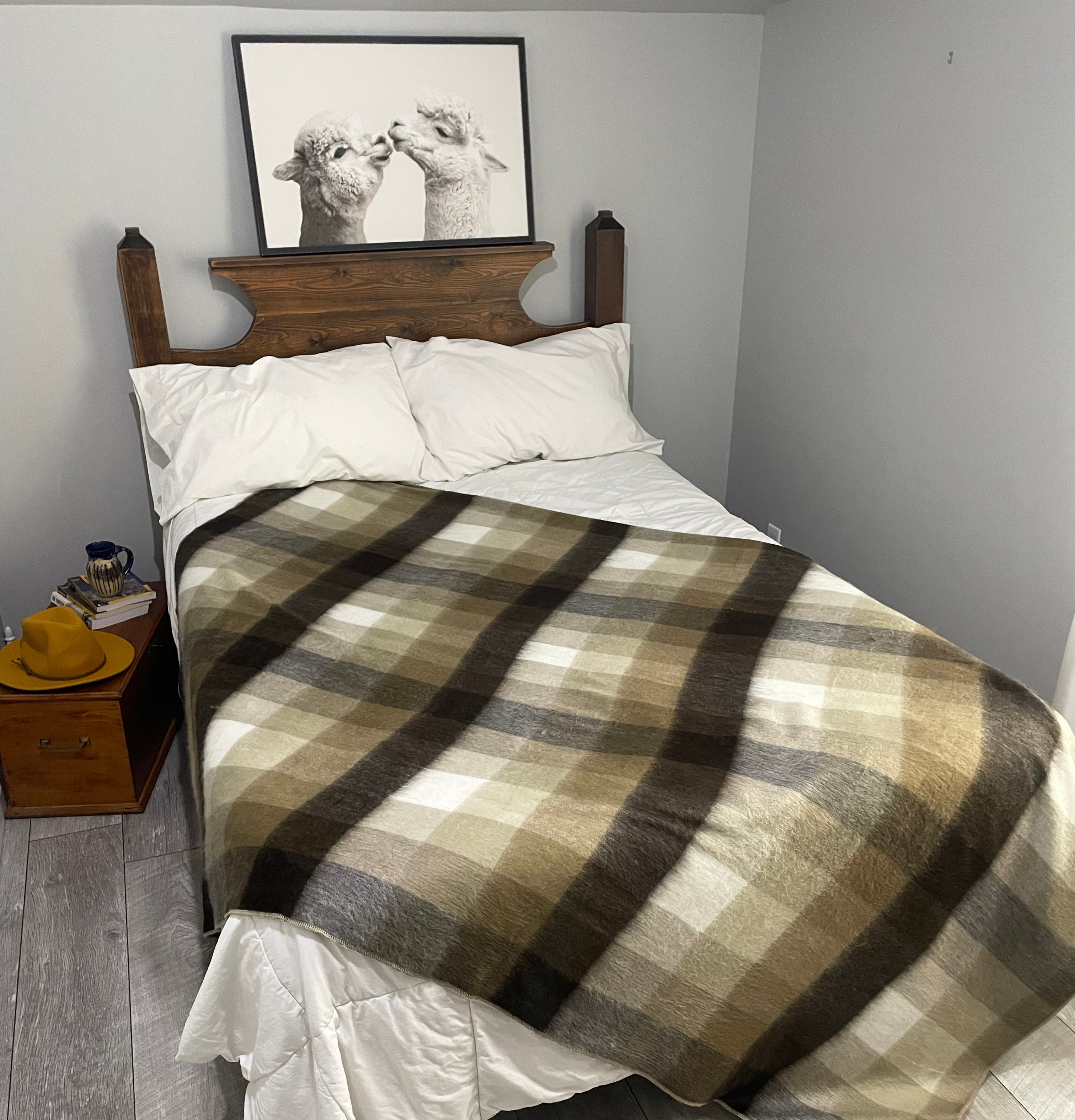 Featuring a sophisticated patchwork design in neutral tones, this blanket seamlessly blends with any decor while offering exceptional softness and warmth. Wrap yourself in timeless craftsmanship and unparalleled comfort—Fancy Alpaca blankets redefine cozy elegance.