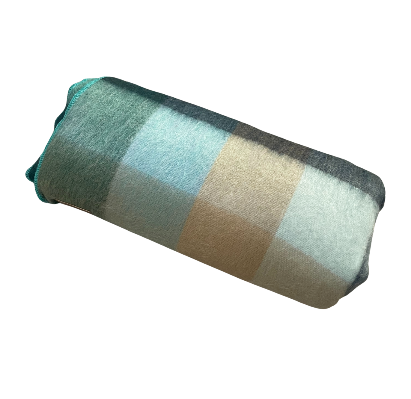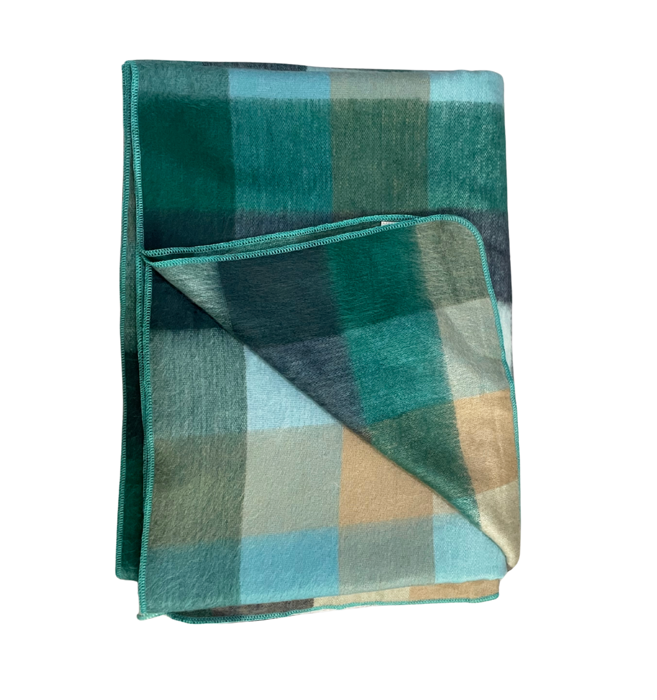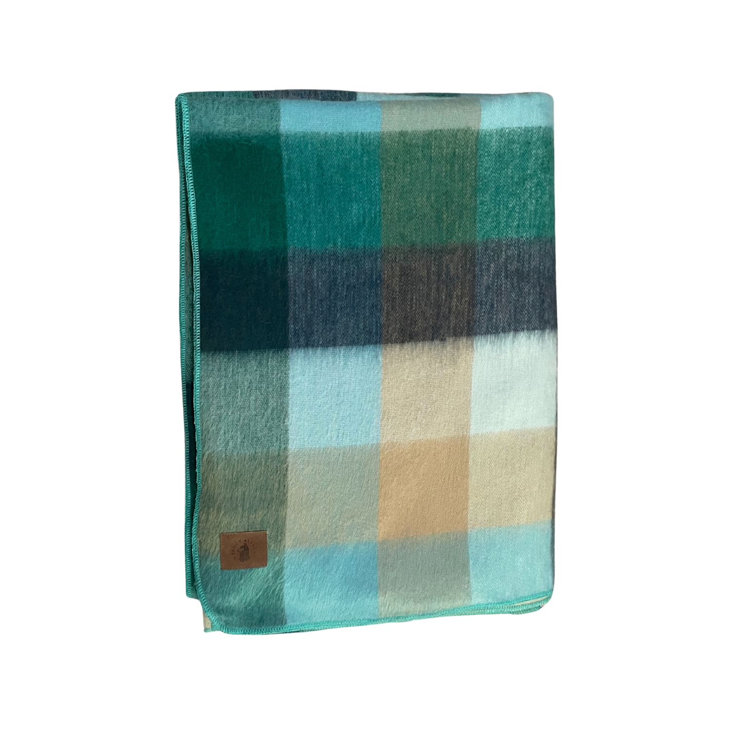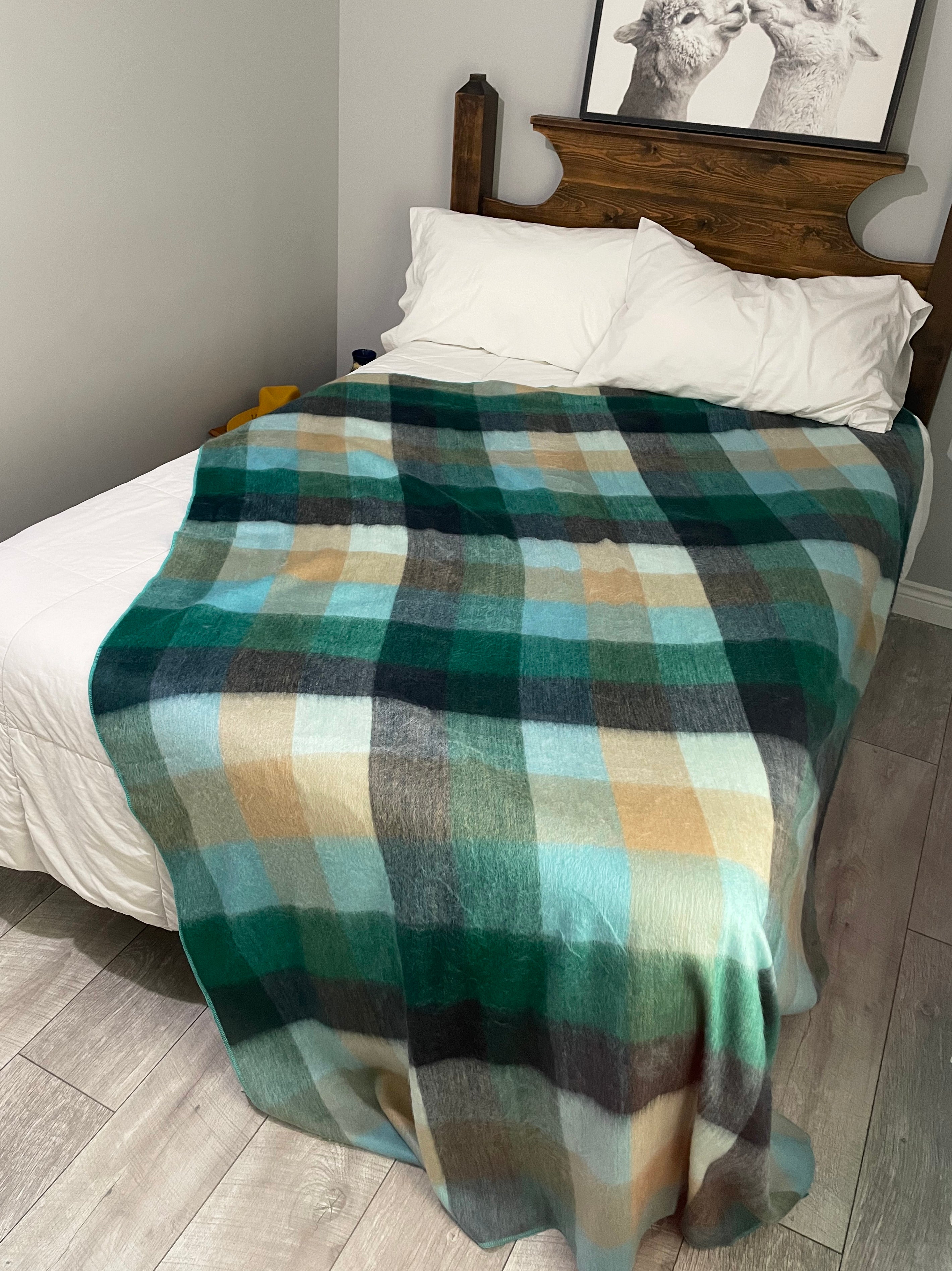 Fancy Alpaca blankets are expertly crafted by local artisans to bring a touch of Andean luxury to your household. Whether you want to curl up to read a good book or are looking for a cozy night’s sleep, a Fancy Alpaca blanket is perfect for these moments. This blanket has a patchwork design blue, green and natural tones.