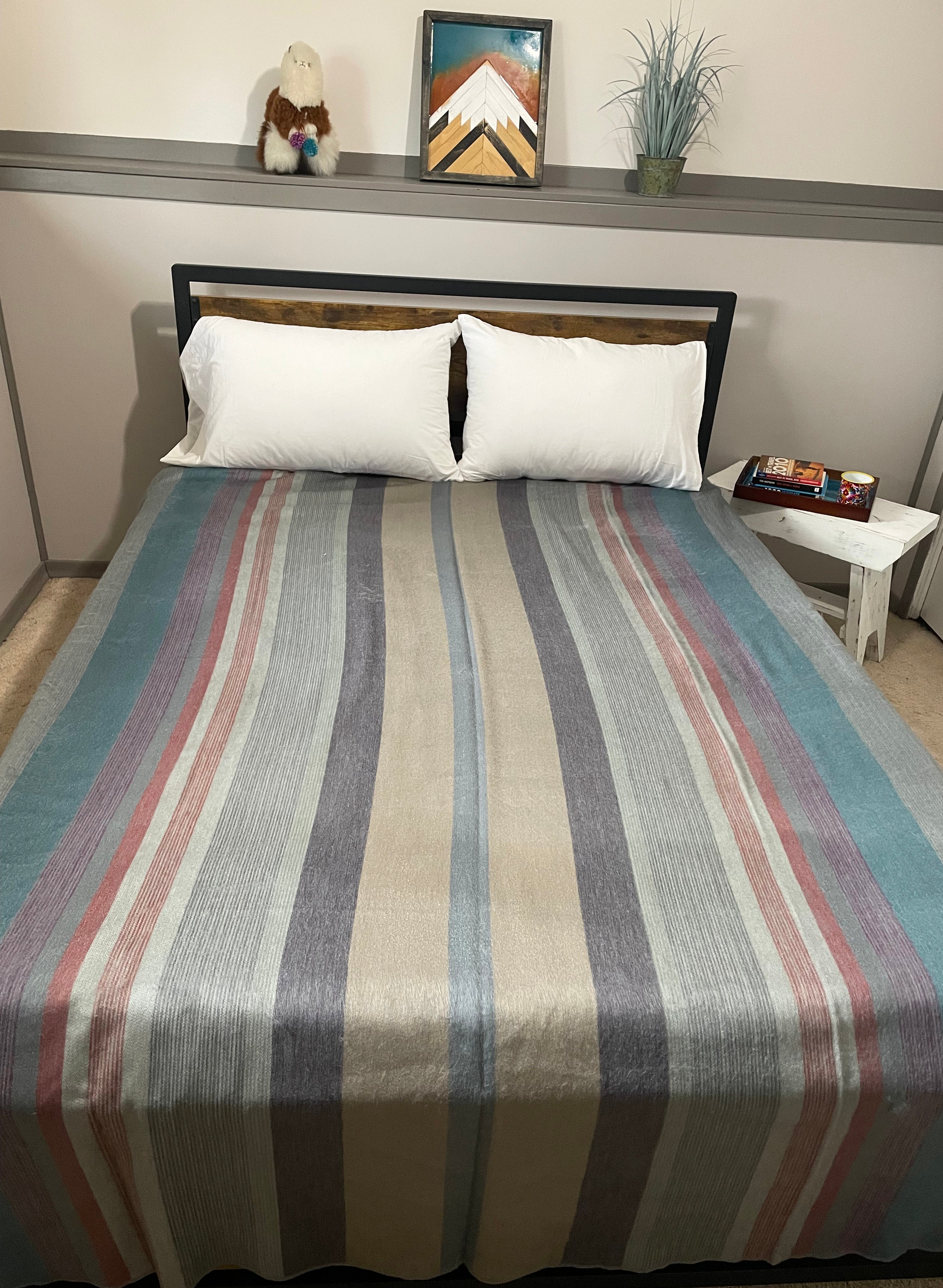 Wrap yourself in warmth and timeless elegance with our beautiful striped alpaca blanket. Crafted by our talented Ecuadorian artisans, this ultra-soft and lightweight blanket is perfect for adding a touch of sophistication to your home while keeping you cozy year-round. Whether you're curling up with a book, adding texture to your living space, or looking for a thoughtful gift, this alpaca blanket is a must-have for comfort and style.
