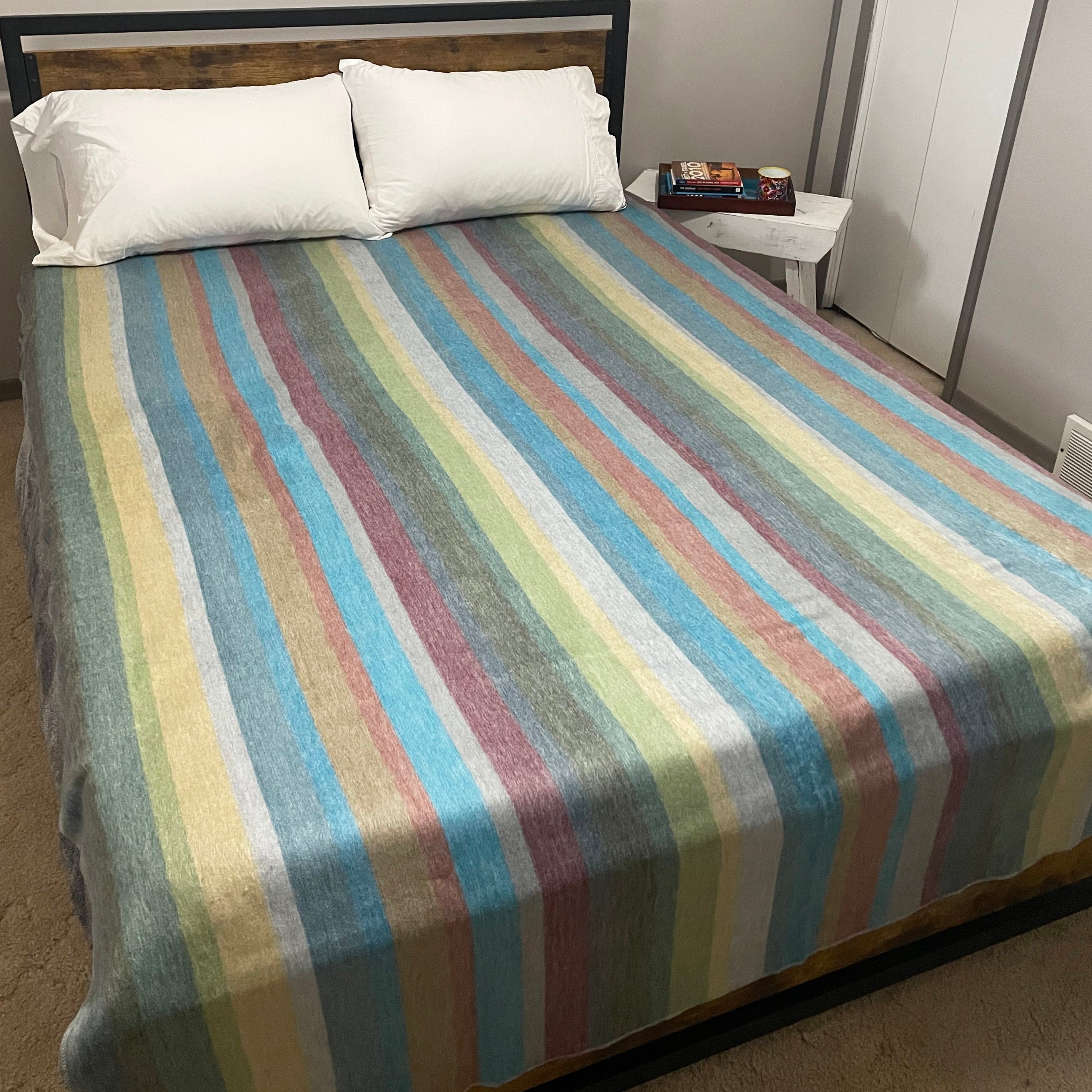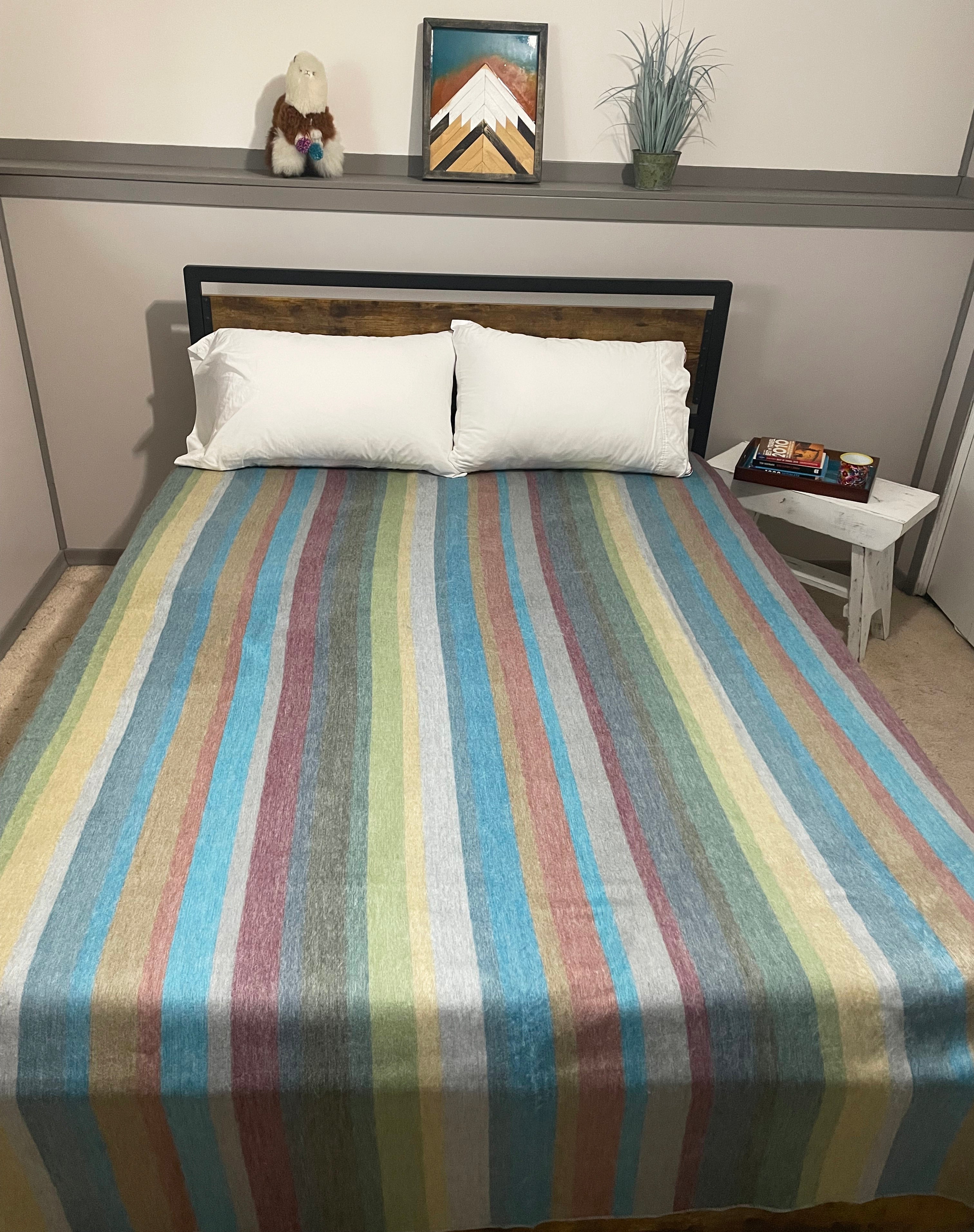 Looking for the perfect gift for a loved one, a wedding, or simply a luxurious treat for yourself? Our beautifully crafted alpaca blankets offers unmatched softness and warmth, making it a cherished addition to any home. Designed for cozy nights in bed or snuggling up on the couch for a movie night, this Fancy Alpaca blanket is both stylish and functional. Featuring vibrant stripes, it adds a stunning pop of color to your space while providing the ultimate comfort. Experience the timeless elegance and warmth of alpaca—this will quickly become a family favorite!