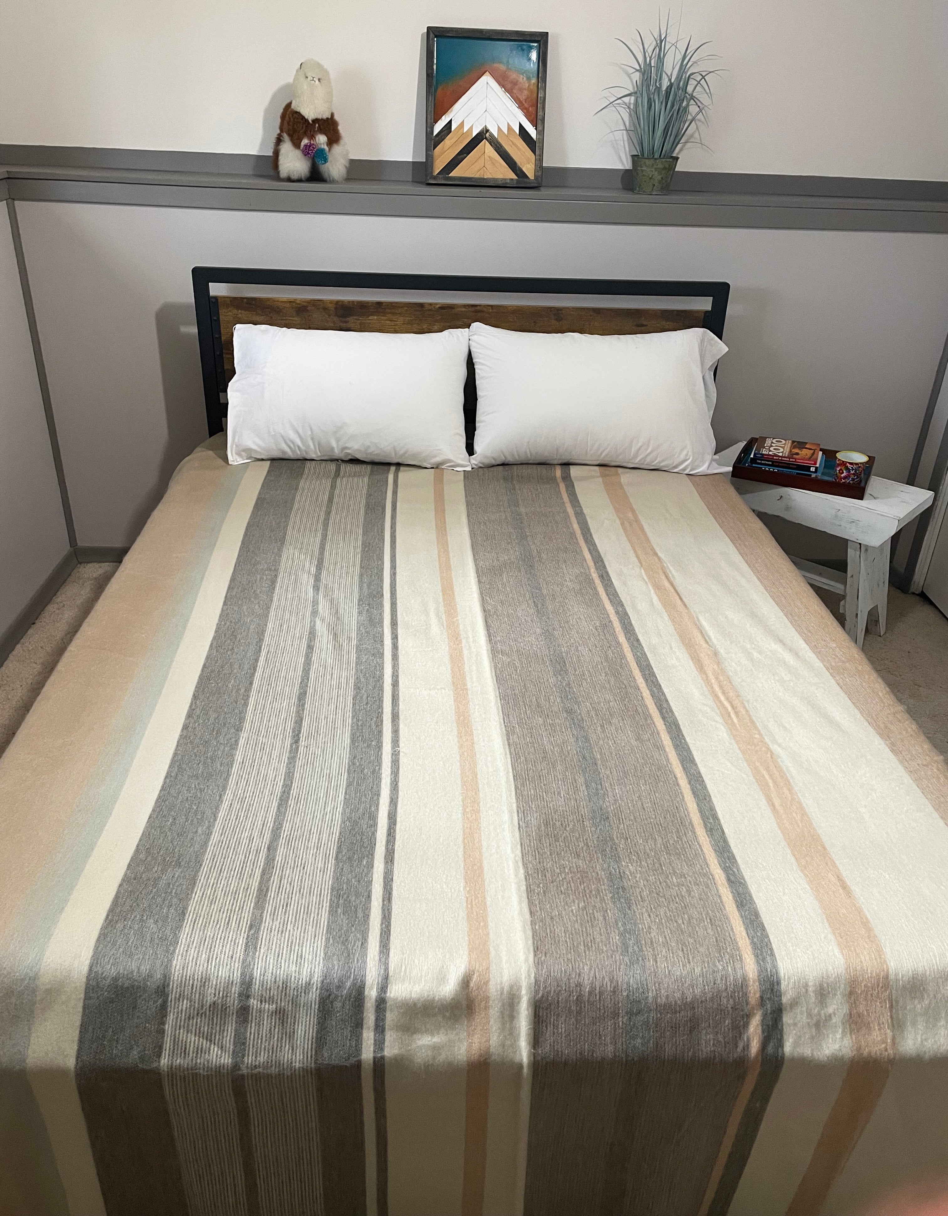Looking for the perfect gift for a loved one, a wedding, or simply a luxurious treat for yourself? Our beautifully crafted alpaca blankets offers unmatched softness and warmth, making it a cherished addition to any home. Designed for cozy nights in bed or snuggling up on the couch for a movie night, this Fancy Alpaca blanket is both stylish and functional. Featuring neutral stripes, it will complement a wide variety of home decor styles while providing the ultimate comfort. Experience the timeless elegance and warmth of alpaca—this will quickly become a family favorite!