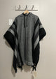 Our beautiful alpaca ponchos are perfect for a casual chilly day or can be dressed up for an evening out. The ponchos are a button up style with a hood and you will love the coziness of the alpaca wool. The ponchos are reversible with one side solid grey and the other side white with stripes.