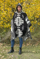 The intricate tribal pattern brings a touch of artistic detail, while the cozy pullover design with a hood ensures comfort and versatility. Whether you're strolling through the countryside or heading out for a casual outing, this poncho adds a timeless, earthy vibe to any wardrobe.