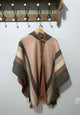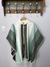 The classic button-up style with a refined collar adds a touch of sophistication, making it a versatile addition to any wardrobe. Featuring beautiful green, grey, and white stripes, this poncho blends earthy tones with timeless design. Whether layered over your favorite outfit or worn as a statement piece, this poncho is the perfect fusion of coziness and style.